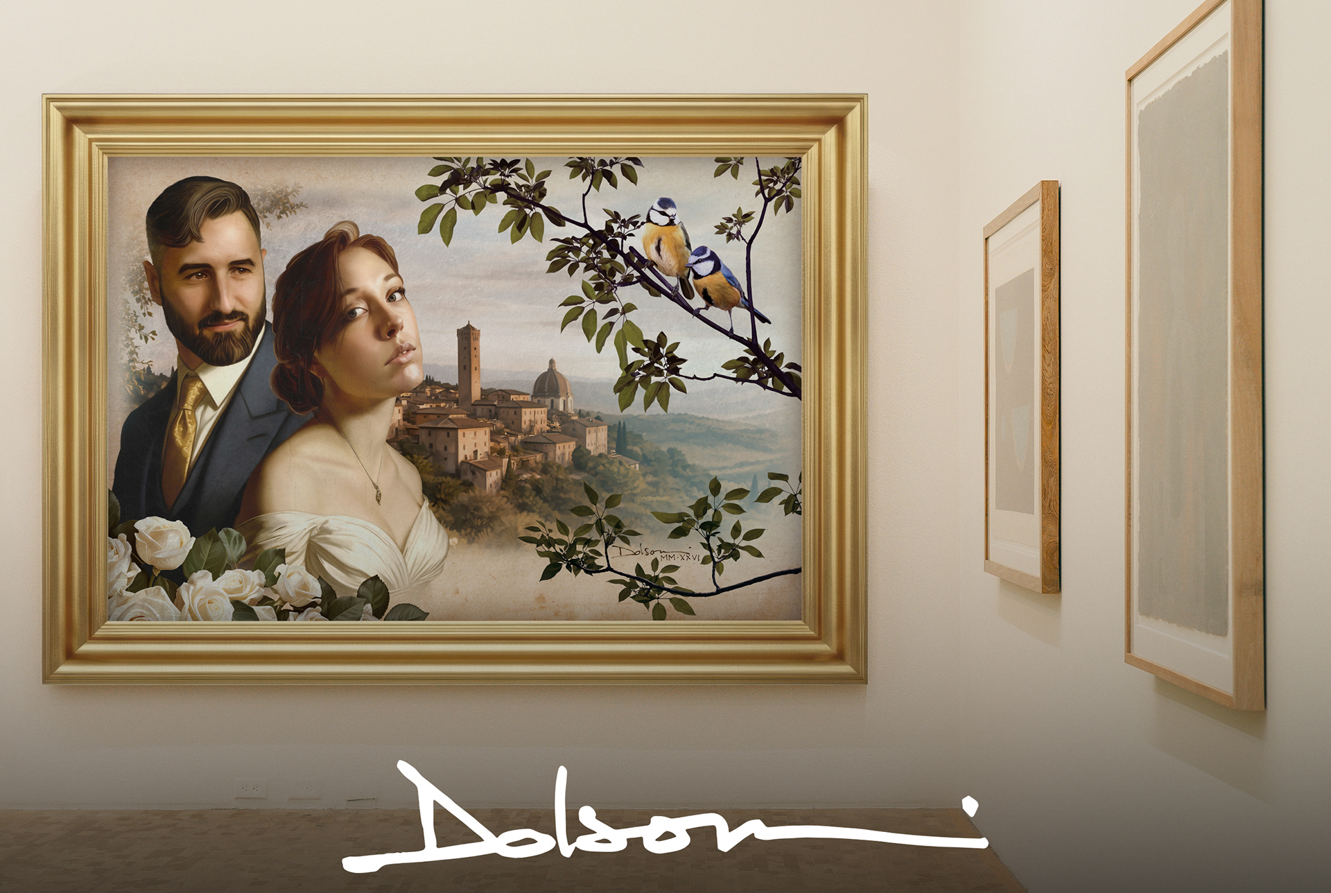 As my wedding approaches, taking place next April, I felt the desire to create this painting as a symbol of connection, continuity, and what is built together. Tuscany appears here in subtle ways, both for what it evokes of my family and artistic heritage, and because it will be the destination of our future honeymoon.